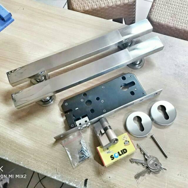 Jual Paket Handle Handel Hendel Kunci Pintu SOLID Komplit . Sumber Gambar : www.tokopedia.com